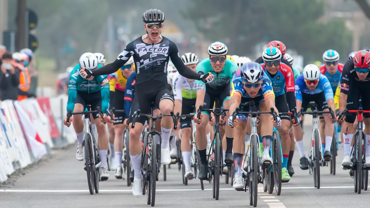 Ubrzo nakon proglašenja pobjednica, muške ekipe zauzele su svoje pozicije na startnoj liniji. Ove godine prijavilo se 28 ekipa, a neki od cijenjenih timova poput Lidl-Trek Factor Racing, Team UAE Emirates Gen Z i Team Visma | Lease a Bike Development dugogodišnji su sudionici ovih biciklističkih natjecanja. Utrka je od samog početka bila vrlo interesantna, a dvojica vozača ostvarila su bijeg od minute i pol, održavajući tu prednost kroz tri kruga. Pred sam cilj glavna grupa se ponovno spojila, da bi se na završnoj liniji desilo nešto veoma rijetko i neuobičajeno. Dok je Adam Bradač iz Factor Racinga već pobjednički širio ruke prelazeći završnu liniju, u istom trenu ga je u sprintu sustigao Dušan Rajović iz tima Solution Tech Nippo Rali. Nakon pomnog pregleda fotofiniša, utvrđeno je da su biciklisti ušli u cilj potpuno izjednačeni – stoga su obojica proglašeni pobjednicima! Treće mjesto osvojio je Erik Fetter iz tima United Shipping.