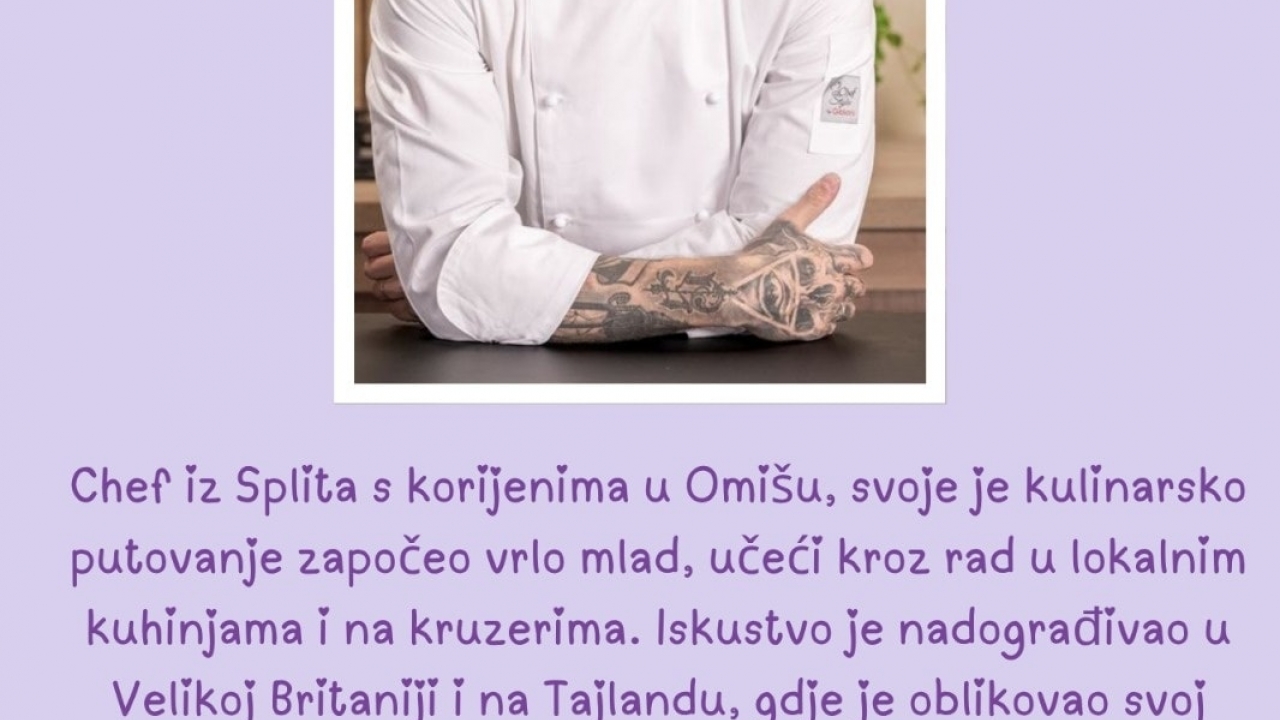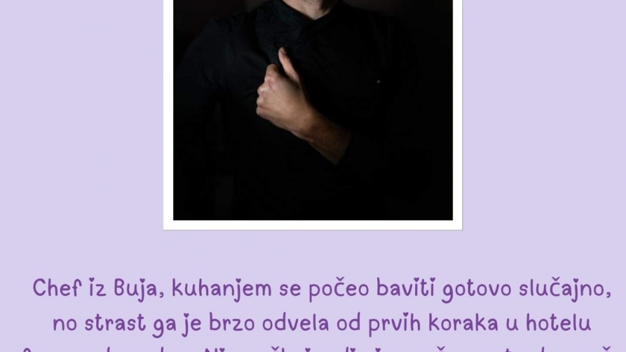 Mario Mandarić – chef poznat po kreativnosti, humanitarnom radu i neumornom angažmanu, kuhat će uz pomoć učenika Srednje gospodarske škole Buje, koji će s njim učiti i pomagati tijekom cijelog dana.